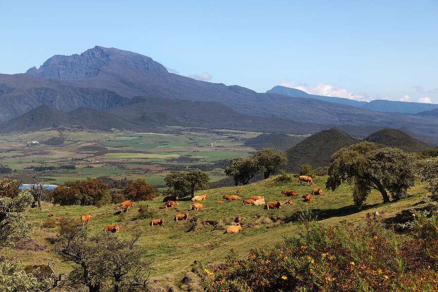 On y trouve aussi le célèbre gazon des Mascareignes, une herbe unique à l’archipel, douce et souple sous les pieds, presque comme du velours.
