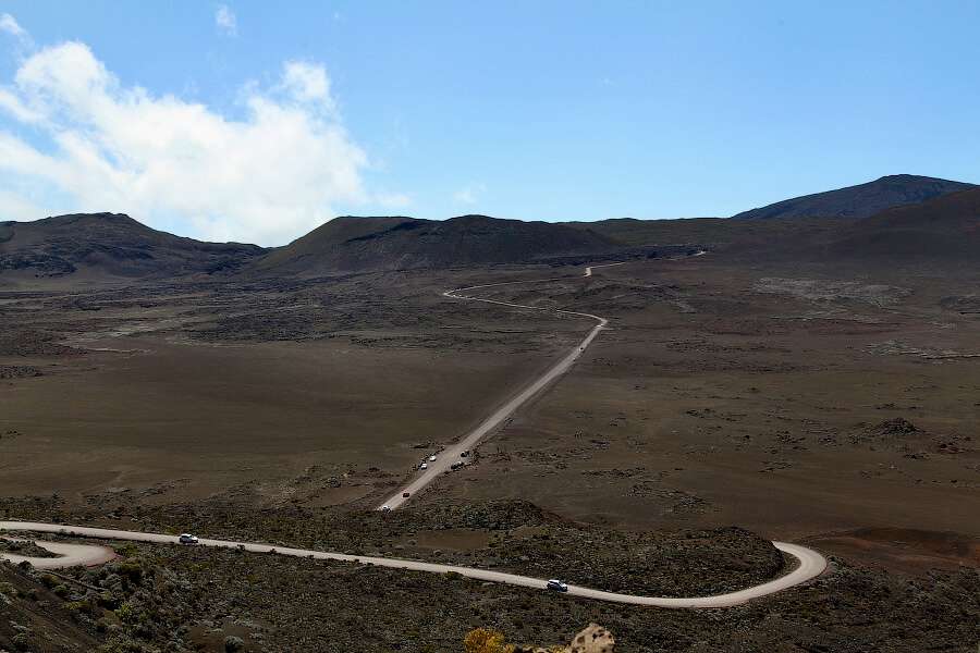 À l’intérieur de la caldeira, les enfants remarquent souvent de fins filaments dorés au sol. Il s’agit des « cheveux de Pélé », nommés d’après la déesse hawaïenne des volcans, Pélé. Lors des éruptions, des gouttelettes de lave très fluide sont projetées dans l’air et étirées par le vent en fils extrêmement fins. Très légers, ils peuvent être transportés sur plusieurs kilomètres.