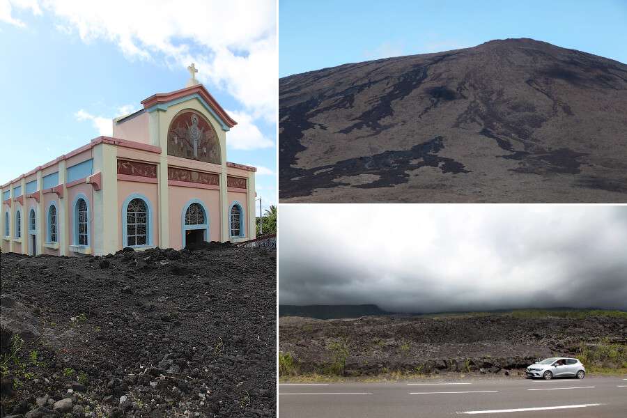 En venant par l’est, faites une halte à St-Rose pour voir l’église Notre-Dame-des-Laves. Son histoire est incroyable : en 1977, lors d’une éruption, la lave changea soudainement de trajectoire et contourna l’église. Le flux s’est scindé en deux, a contourné l’édifice par les côtés et s’est refermé derrière elle. Beaucoup y ont vu un miracle, et l’église est rapidement devenue célèbre.